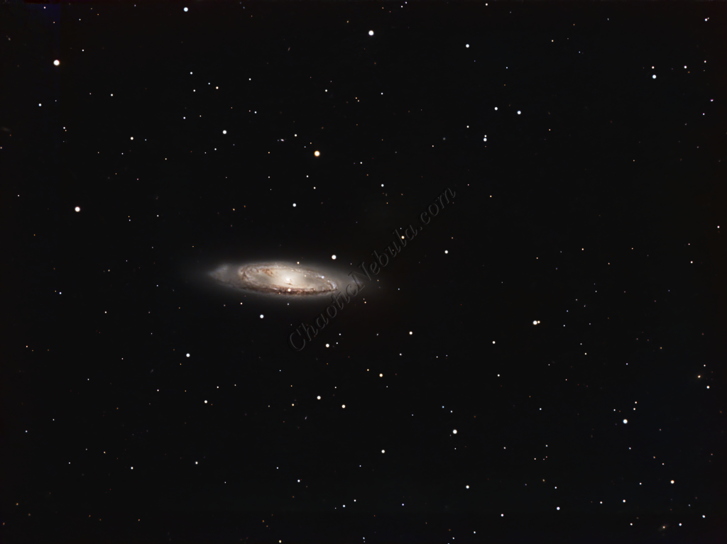Messier 65 (M65), also cataloged as NGC 3623, is a striking intermediate spiral galaxy located approximately 35 million light-years away in the constellation Leo. As a prominent member of the famous Leo Triplet, M65 sits in a gravity-bound neighborhood alongside M66 and NGC 3628. Spanning roughly 100,000 light-years in diameter, its high inclination relative to Earth provides astrophotographers with a stunning, nearly edge-on perspective of its tightly wound structure.